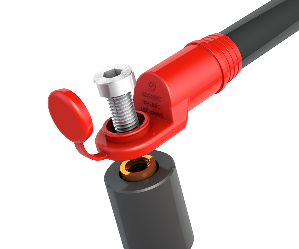 The Lugsulation Cap is similar to the Lugsulation Flex but features a one-sided integrated O-ring. It is typically used in applications where limited space is available for assembly. The key feature is the use of an internal hexagon screw (ISK). The cylindrical screw head sinks into the plastic enclosure and seals radially against its inner wall—i.e., circumferentially along the screw direction. The bottom of the screw head rests against the contact element. After tightening the connection, the accessible screw head is sealed with a closing cap. The lower O-ring provides sealing similar to the Lugsulation Flex design.